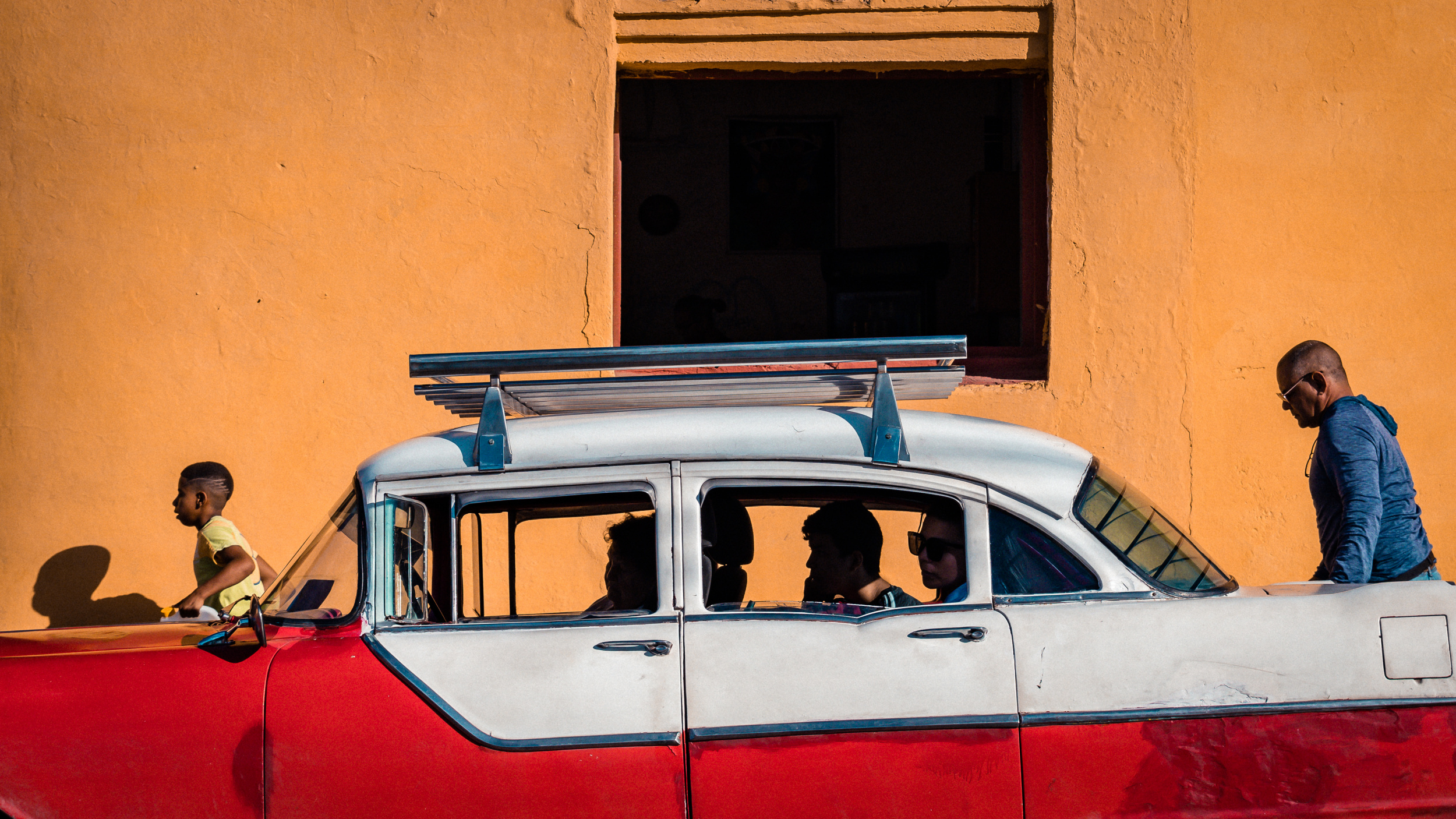 One of my favorite photographs is of a taxi driver in Havana, as it captures a truly fleeting moment. I was walking through the narrow streets of Old Havana, searching for interesting subjects, when I noticed a red vintage car parked along the road. Suddenly, a taxi screeched to a stop beside me. The driver turned his head at the exact instant I faced toward him. I found his expression immediately compelling, and before he could even ask whether I needed a ride, I instinctively pressed the shutter. That brief, unplanned exchange is what makes the image special to me, it reflects the spontaneity and human connection I value in street photography.
